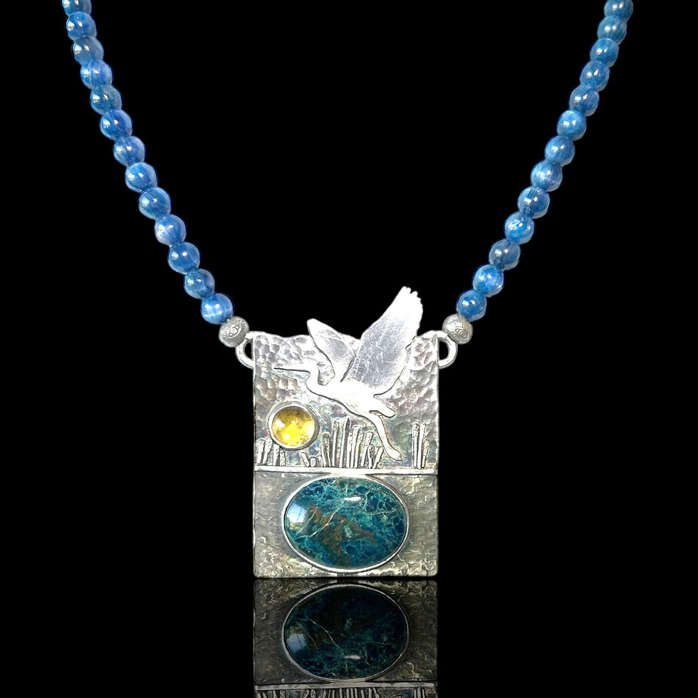 Hand created sterling silver, copper and bronze pendants with semi-precious stones